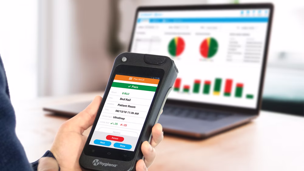 This small, hand held monitoring device looks and functions just like a smartphone but is used in the detection of Adenosine Triphosphate. ATP is present in all living and previously living organisms and so is a good indicator of microbial activity/contamination. The EnSURE analyses samples taken from various surfaces and locations and gives results that can then be used to gauge the sanitation of that particular surface. This is an opportunity for us to be able to quantify the efficacy of our cleaning.